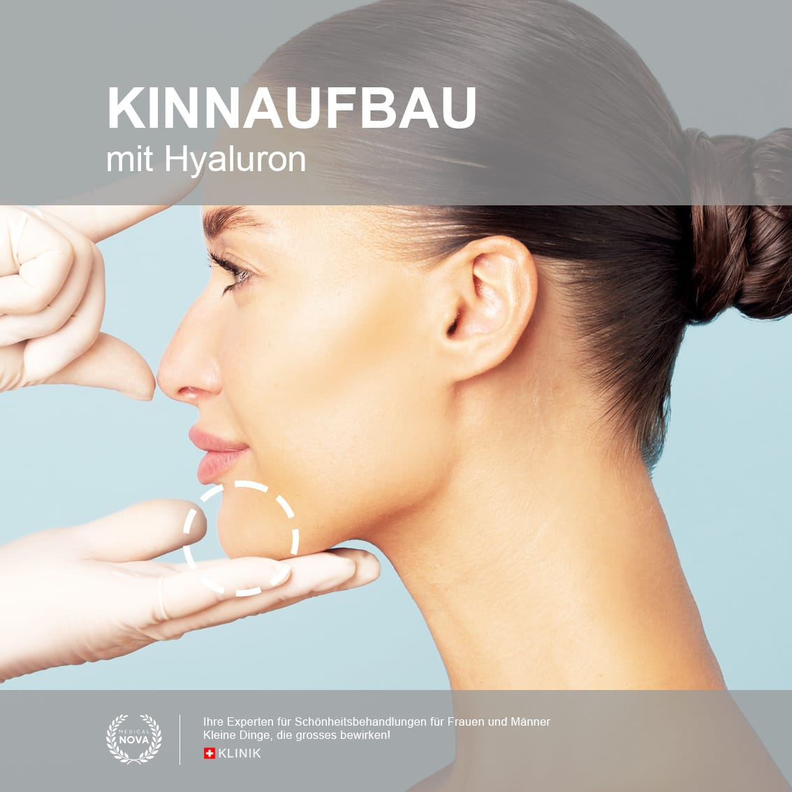 Chin augmentation with hyaluronic acid - chin correction without surgery The most important facts at a glance In chin augmentation with hyaluronic acid, stabilised hyaluronic acid is injected specifically into the chin region to harmonise the facial profile and correct a receding chin. The treatment offers immediately visible results without surgery or prolonged downtime. Method Minimally invasive chin correction with cross-linked hyaluronic acid Treatment duration 20-30 minutes, no downtime Filler quantity 0.8-2.0 ml depending on the initial situation and treatment goal Result Immediately visible / ...