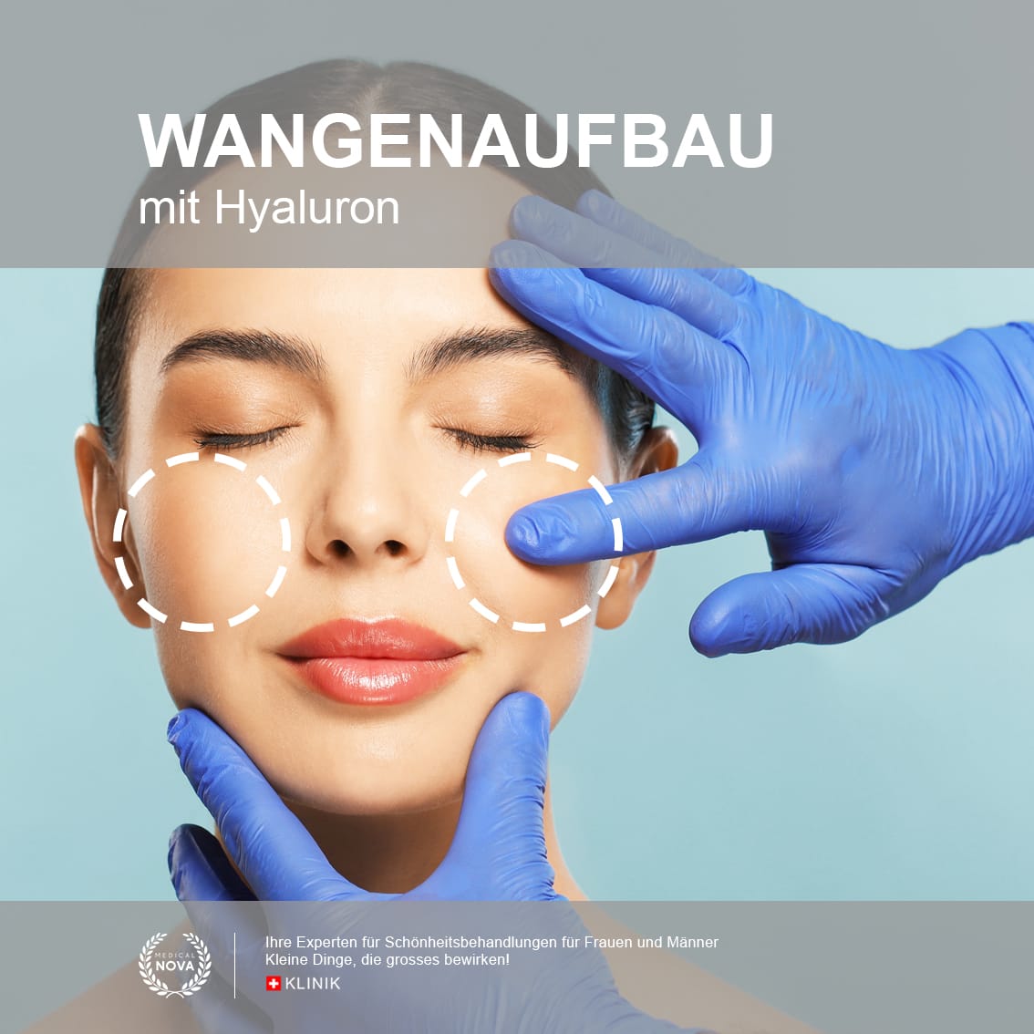 Cheek augmentation with hyaluronic acid: procedure, quantity, durability & risks The most important facts at a glance Cheek augmentation with hyaluronic acid involves building up volume in various layers of tissue and harmoniously modelling the natural contours of the cheeks. The treatment is ideal for volume loss, sunken cheeks or the desire for defined facial contours - with immediately visible, natural results. Method Non-surgical volume build-up with hyaluronic acid Treatment duration 30-45 minutes, no downtime Effect Immediately visible / final result after 10-14 days Durability ...